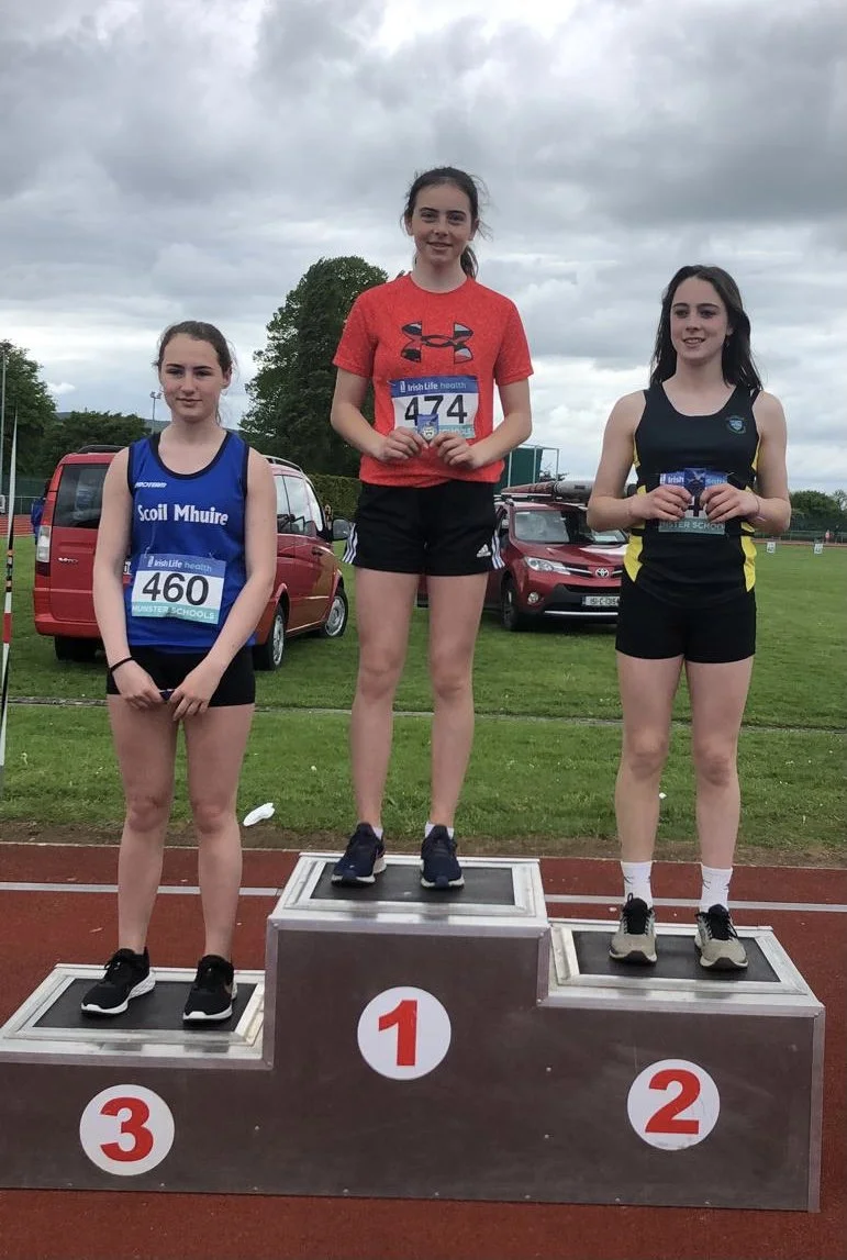 Diana Coakley(2nd year) was 3rd in the Junior Discus,Elaine OSullivan (1st year),was 5th in Javelin and 5th in Discus and Ciara Delaney was7th in the 800m.
