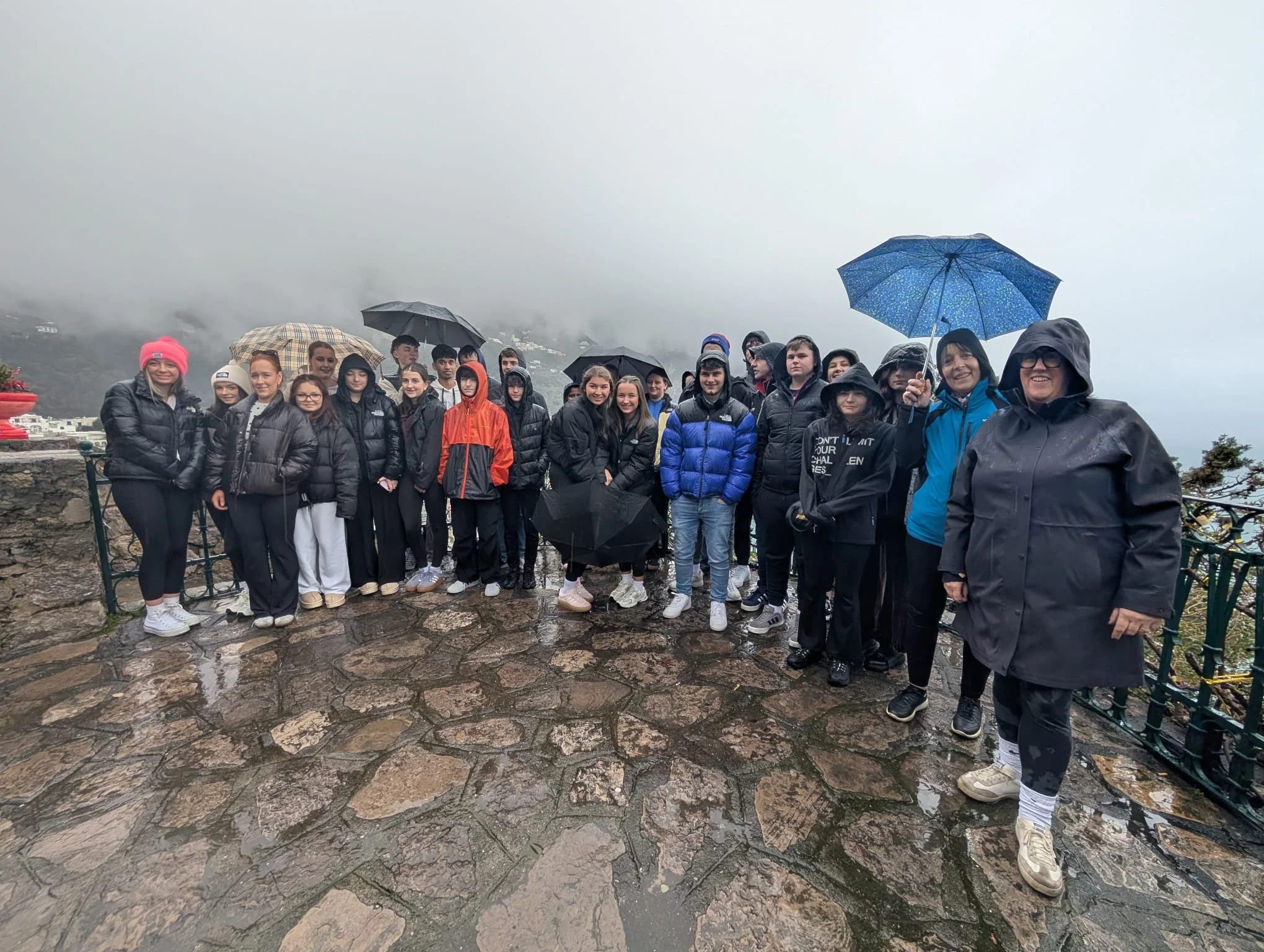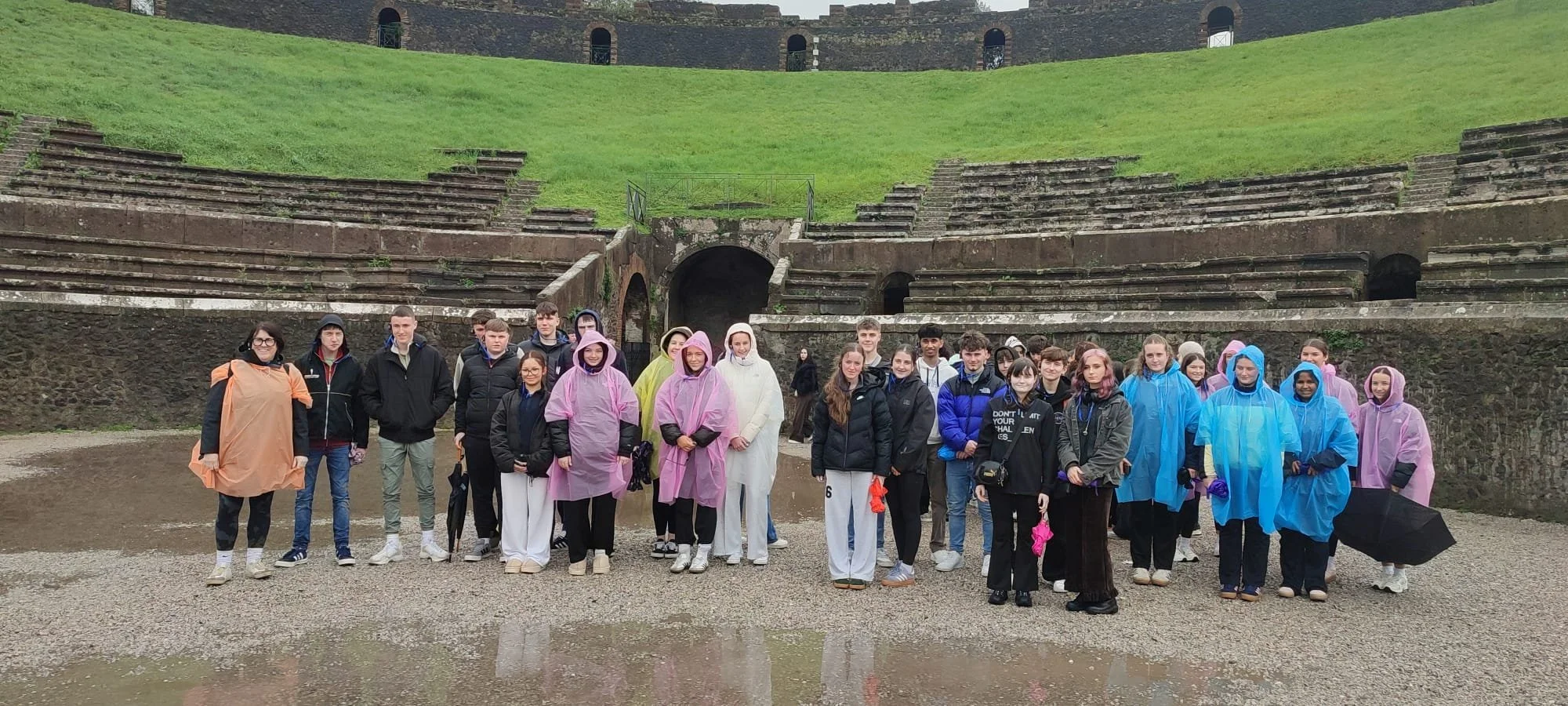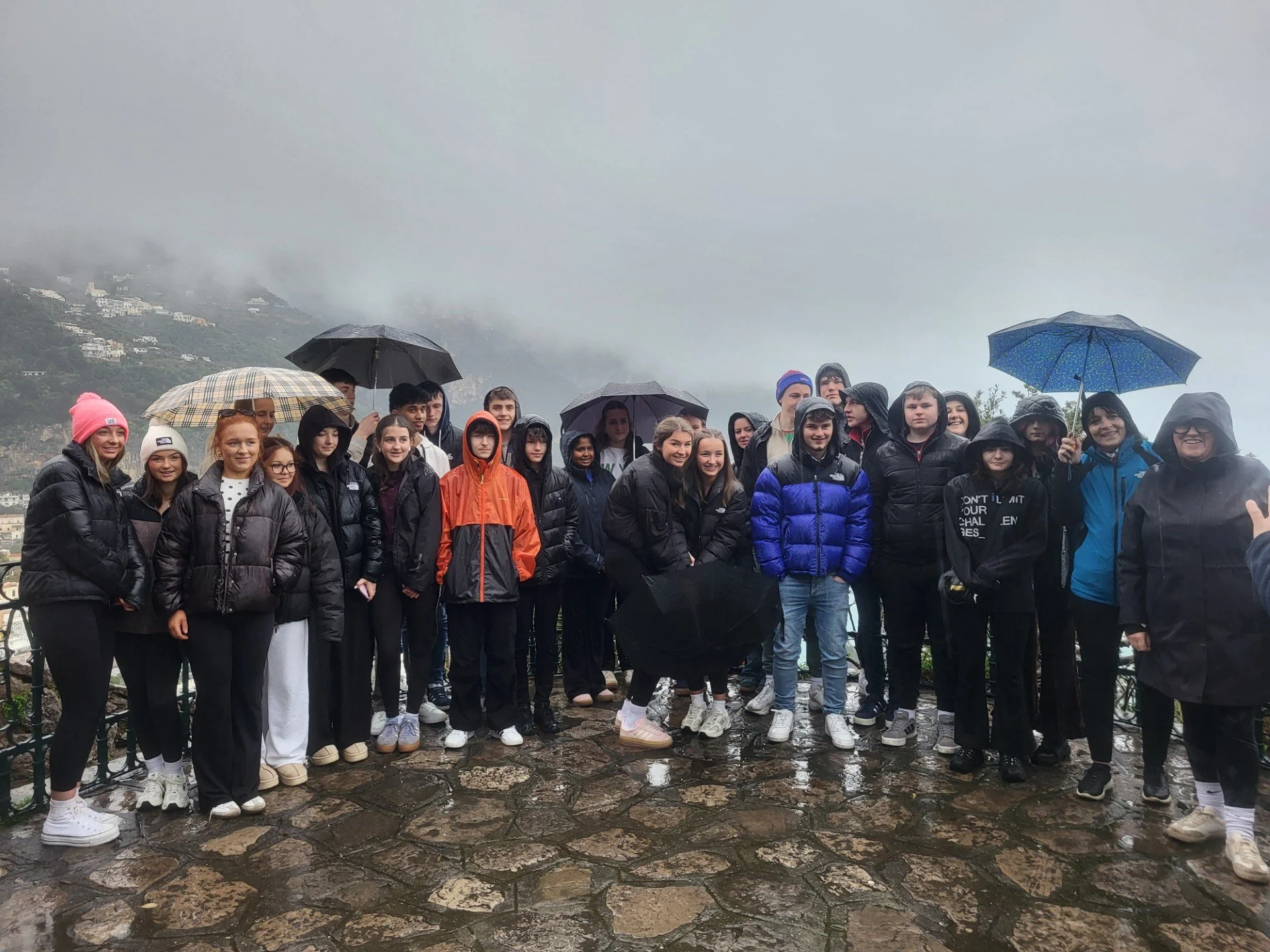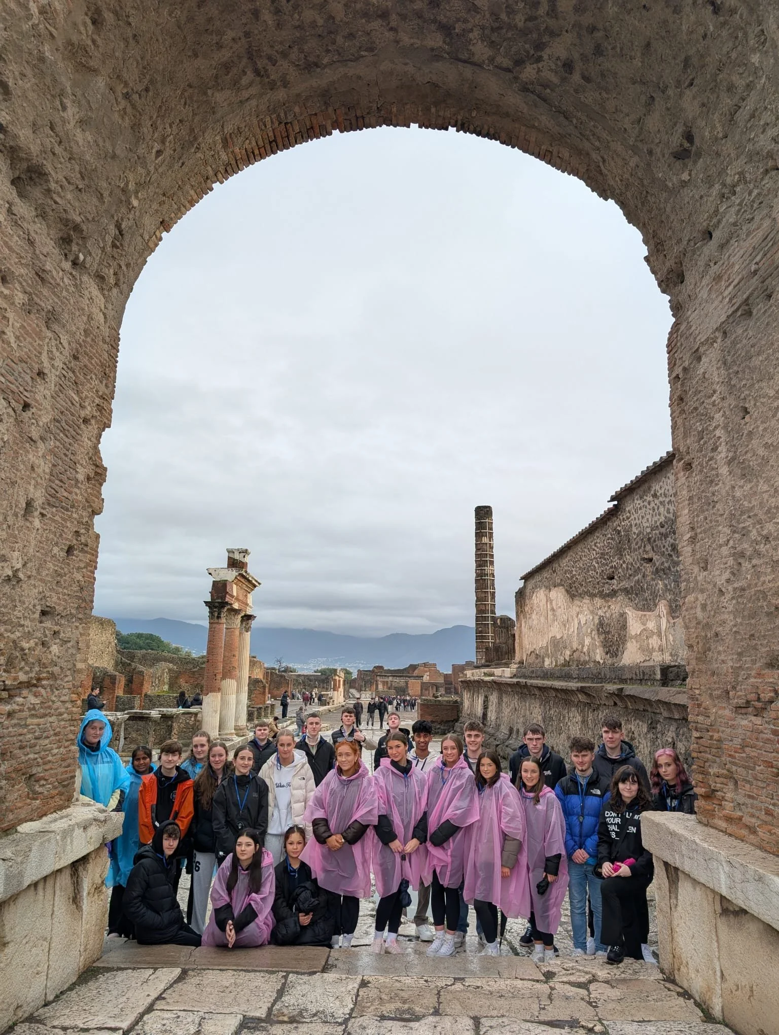 Due to the inclement weather our visit to Amalfi was cut short in favour of a longer visit to one of Europe’s largest shopping centres, a cross our students bore bravely. After drying out here and some lunch, our next stop was Pompeii where the majestic Vesuvius was hidden under cloud and the rain continued to pour. But every cloud……… who knew rain ponchos would be the discovery of the trip – soon to be making an appearance in SCS – you heard it here first!