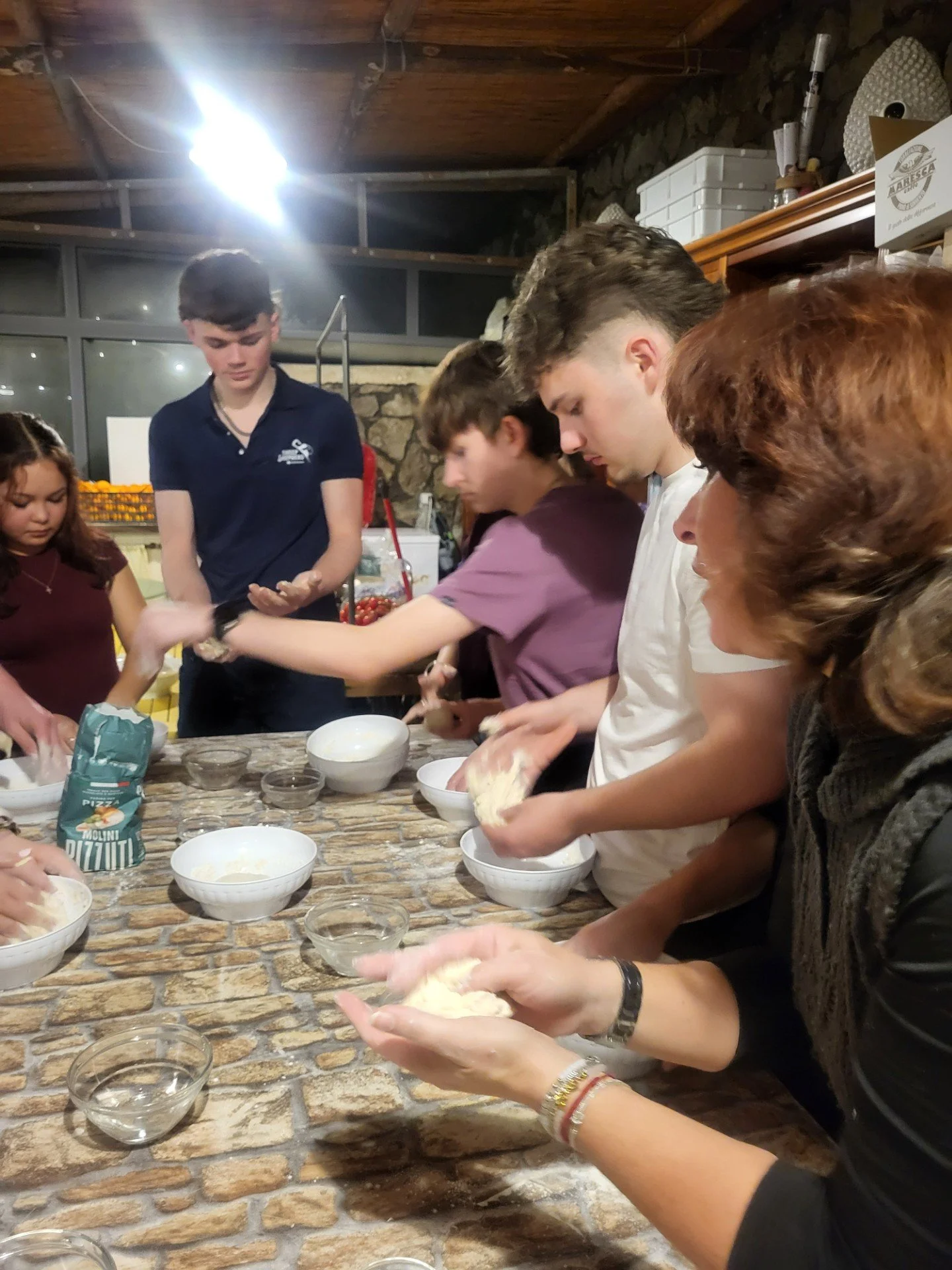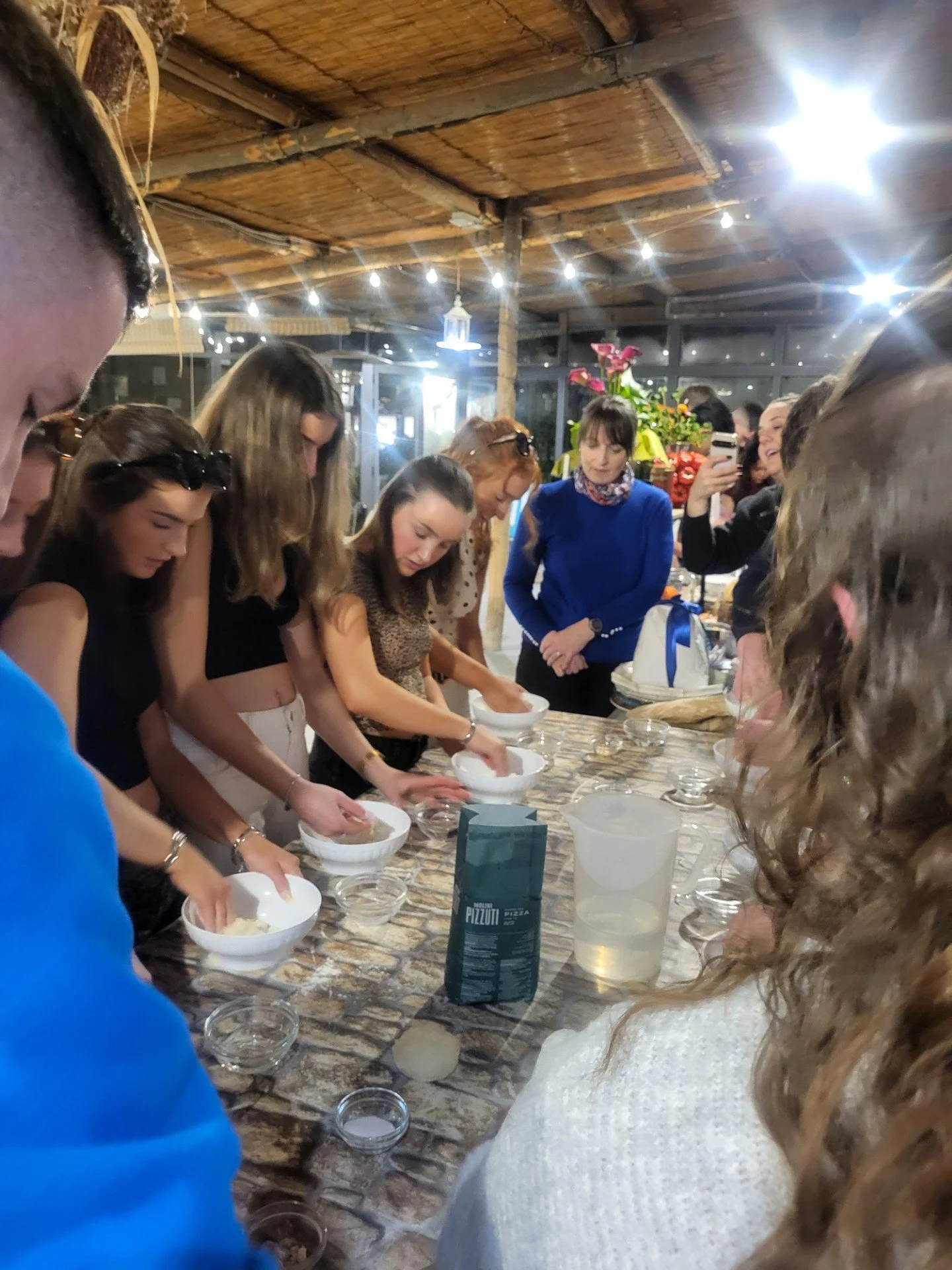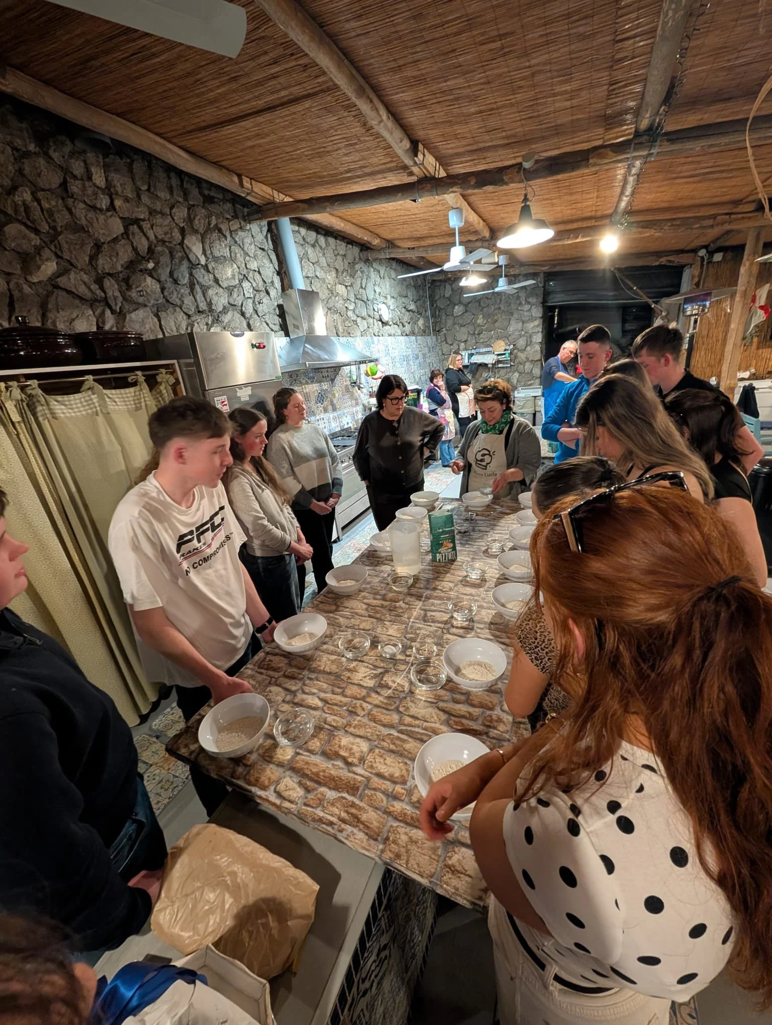 Back to our hotel then for a quick change (we ditched the ponchos), before arriving at the cookery school for our pizza making class. Mama Lucia demonstrated the technique for making the dough. Students then made their own, chose their toppings before baking in a spectacular wood fired oven. The evening was made more special by the arrival of a group of traditional Sorrento dancers and musicians – everyone got involved, such fun!