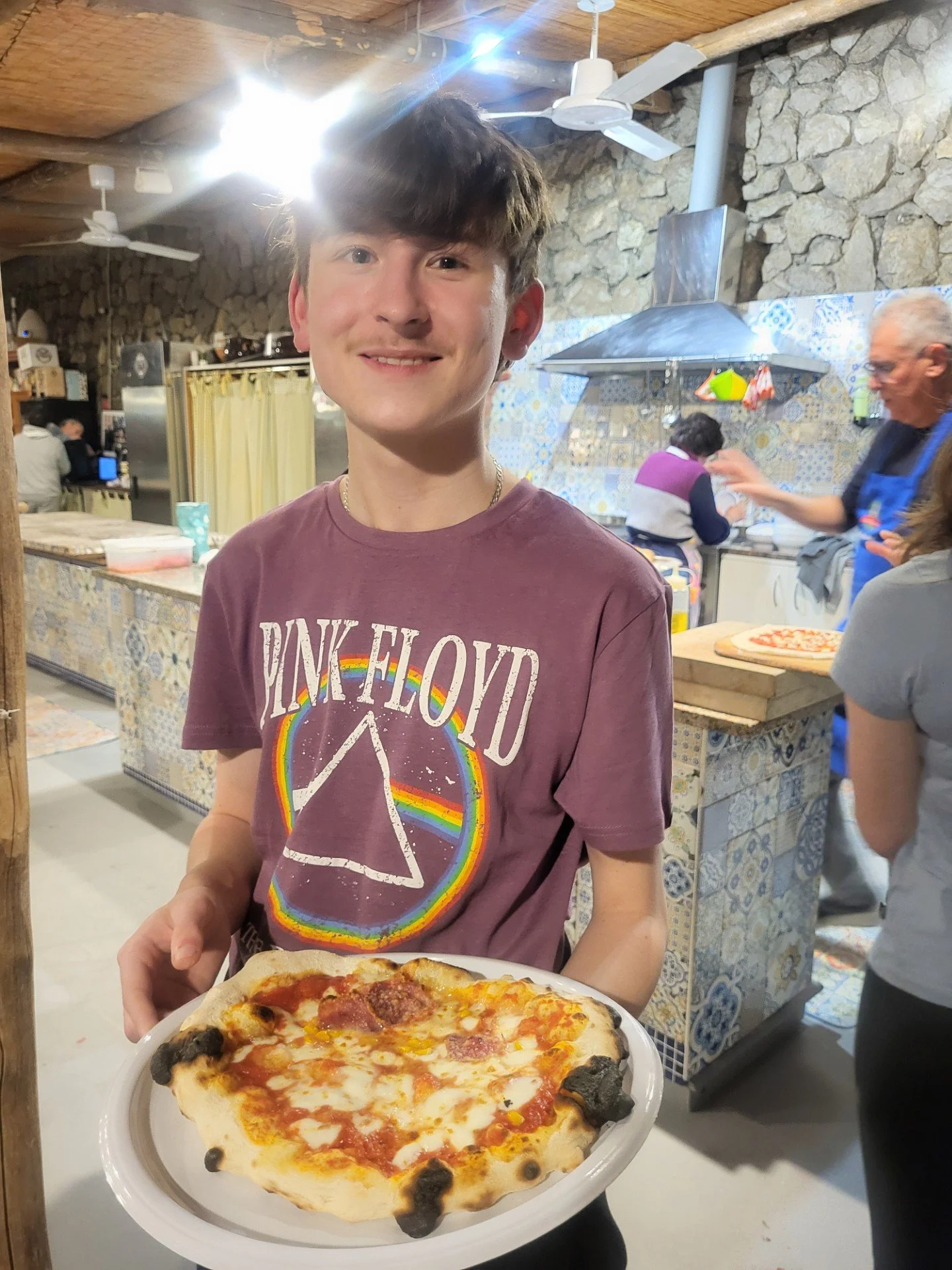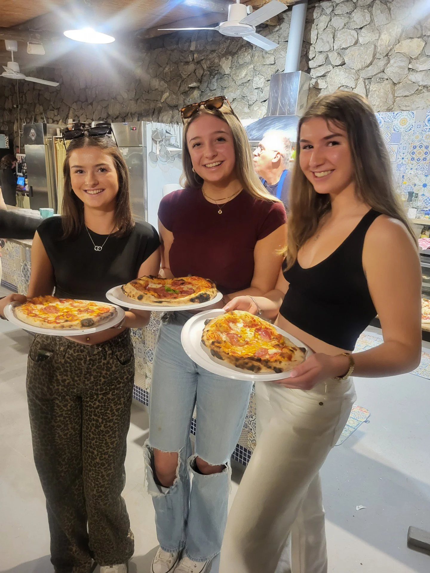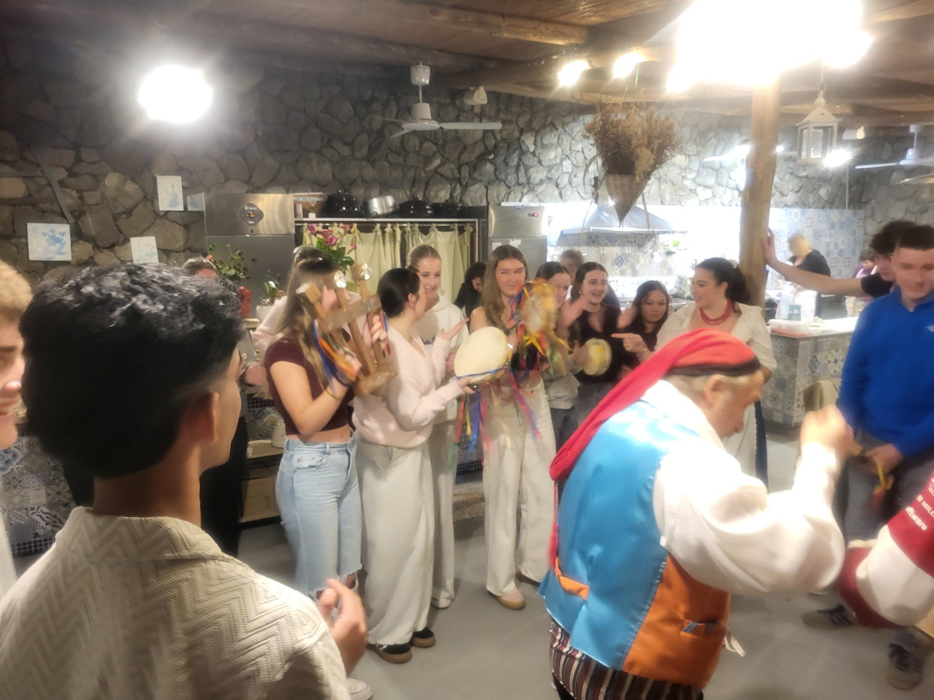 Back to our hotel then for a quick change (we ditched the ponchos), before arriving at the cookery school for our pizza making class. Mama Lucia demonstrated the technique for making the dough. Students then made their own, chose their toppings before baking in a spectacular wood fired oven. The evening was made more special by the arrival of a group of traditional Sorrento dancers and musicians – everyone got involved, such fun!